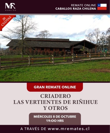 El Criadero Las Vertientes de Riñihue, propiedad de Miguel Bas, y otros criadores tienen este miércoles 8 de octubre desde las 19:00 horas un atractivo remate de Caballos Raza Chilena.