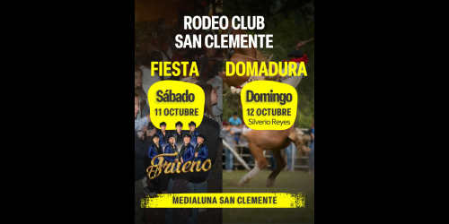 El Club San Clemente tiene preparado una gran fiesta corralera para este fin de semana en la Medialuna "Fernando Hurtado Echenique", evento que contará con la participación de colleras de gran prestigio, un entretenido baile con dos orquestas, juegos para niños, un buen casino, equinoterapia y domadoras. Un evento espectacular.