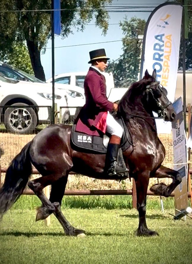 También comentó que "con nuestros caballos frisones hicimos varias presentaciones en pista. Llevamos una yegua enganchada y un caballo de montura. Este último fue montado por Nicolás Guerra, hijo de don Mario Guerra, quien hizo una presentación maravillosa, vestido de etiqueta, con sombrero de copa. La gente estaba fascinada porque no es común ver un frisón montado con esa docilidad y elegancia".