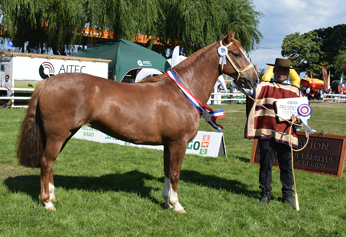 RESERVADO CAMPEONA YEGUA MAYORES: Piedras Blancas del Arrayán COPUCHENTA, N° 285.901, del 18/12/2018, por San Remigio Estrellón (Escorpión y Llovizna) y Los Tacos de Rumai Encadenada (Eslabón y Anfitriona). Criador y expositor: Vittorio Cavalieri R.