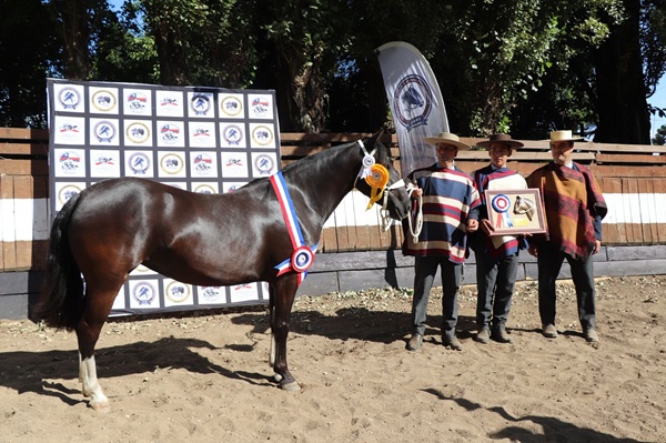 Campeona Yegua: Camenchito Esa Rotita. N° de Inscripción: 318038. Fecha de Nacimiento: 16-03-2022. Padre: Flor del Llaima Remiendo. Madre: Donde Pancho La Incondicional. Criador: Carlos Reyes Sanzana. Expositor: Carlos Moisés Adán Reyes.