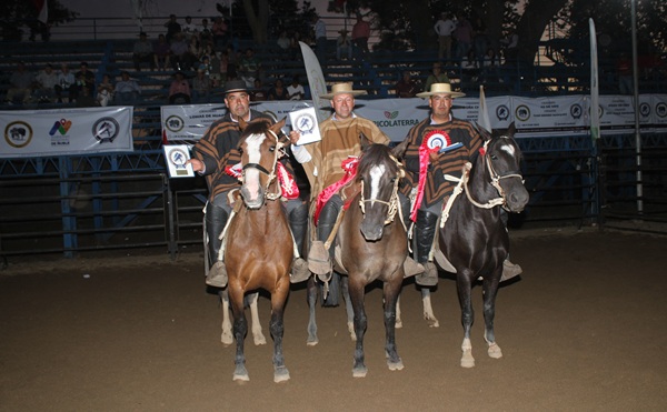 2.- Amigos por Siempre, John Pastén en Carampangue El Flecha, Juan Vásquez en Carampangue Roberto, Manuel Vásquez en Cun Cun Cornudo con 1'24" (51" y 33") y 6 animales correctamente apartados.