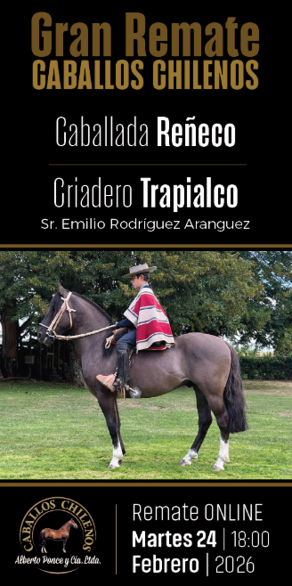 El Criadero Reñeco, propiedad de Jorge Rojas, y el Criadero Trapialco, perteneciente a Emilio Rodríguez, tienen este martes 24 de febrero desde las 18:00 horas un atractivo remate de Caballos Raza Chilena.