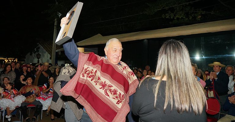 La ceremonia también tuvo espacios de recogimiento con homenajes póstumos. Se reconoció la labor del artesano Segundo Toledo (QEPD), destacado talabartero cuyas monturas trascendieron fronteras, y de Renato Alarcón (QEPD), recordado dirigente, corralero y secretario de rodeos de la Asociación Ñuble, valorado por su profesionalismo y compromiso con la organización de competencias.