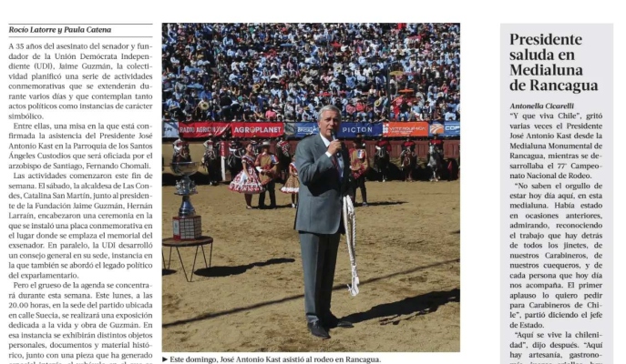 Mientras que El Mostrador publicó que "Kast asiste a Campeonato Nacional de Rodeo y hace llamado a 'mantener las tradiciones'".