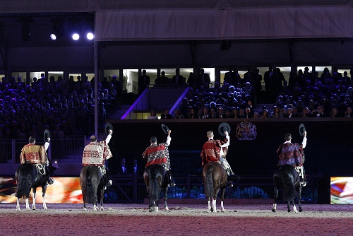 La prueba de este lunes contó con la presencia de todas las delegaciones extranjeras y los dueños de casa, con música, danza y muestras ecuestres.