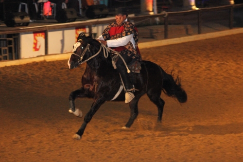 El ensayo vespertino de la Escuadra Palmas de Peñaflor fue en conjunto con Córdoba Ecuestre. Este viernes a las 21:00 horas locales (15:00 horas de Chile) será el primer espectáculo en las Caballerizas Reales.