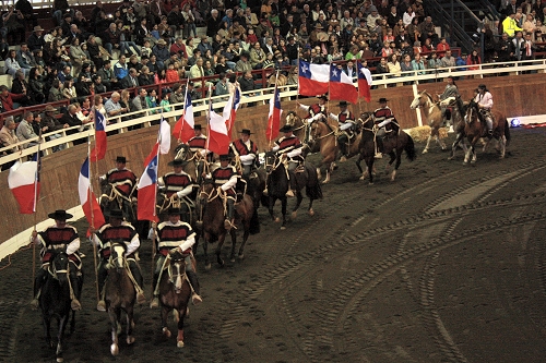 Y aunque la intensa lluvia que cayó durante la jornada jamás amenazó la realización del evento, los organizadores dispusieron trasladar la presentación desde la elipse del recinto Sago a la medialuna techada, lo que terminó convirtiéndose en un gran desafío para la Escuadra que por primera vez ofreció su reconocido espectáculo al interior de una medialuna.