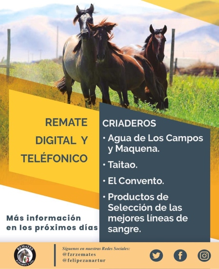 "Este es un remate digital y telefónico, para el cual deben solicitar clave y crédito al fono +56993356661. Para este remate tenemos cuatro criaderos de mucha importancia", comentó de entrada Felipe Zañartu en diálogo con Caballoyrodeo.cl