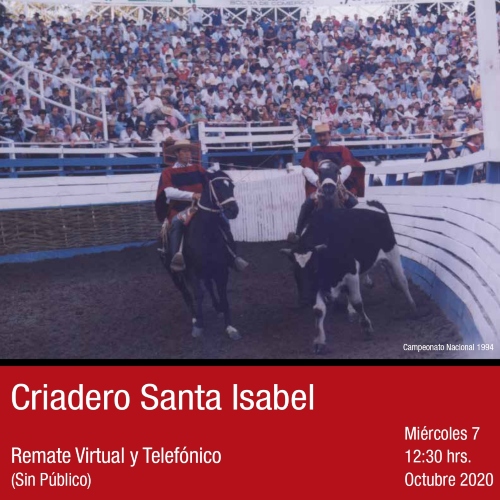 El Criadero Santa Isabel, el plantel con más títulos en la historia del Rodeo Chileno, tiene este miércoles 7 de octubre un atractivo remate on line, donde saldrán a martillo varias de las destacadas sangres que su fundador, Agustín Edwards, y quienes hoy lo administran han recopilado en su exitosa existencia.