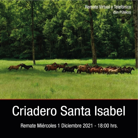 Un atractivo remate de 20 ejemplares realizará este miércoles 1 de diciembre desde las 18:00 horas el Criadero Santa Isabel, instancia donde saldrán 10 potrillos y 10 potrancas de las más destacadas sangres del plantel más ganador del Rodeo Chileno.
