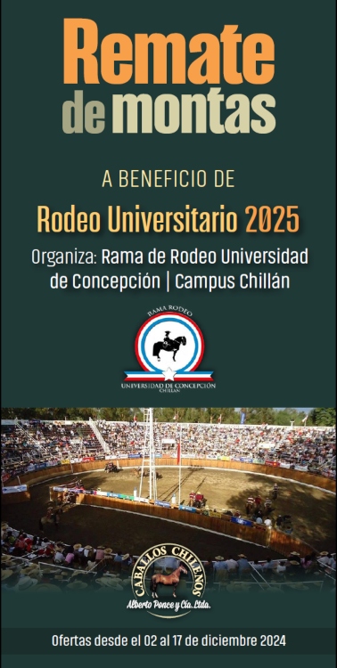 La Rama de Rodeo de la Universidad de Concepción Campus Chillán armó un atractivo remate de montas con el objetivo de recaudar fondos con miras al Campeonato Nacional Universitario 2025 a realizarse entre el 25 y el 27 de abril en la Medialuna de San Carlos.