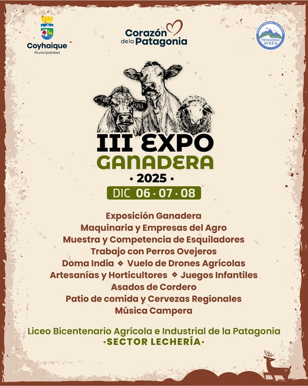 Además, la Exposición de Caballos Raza Chilena quedó fijada para el lunes 8 de diciembre dentro de la III Expo Ganadera a realizarse en el Liceo Bicentenario Agrícola e Industrial de la Patagonia, en Coyhaique.