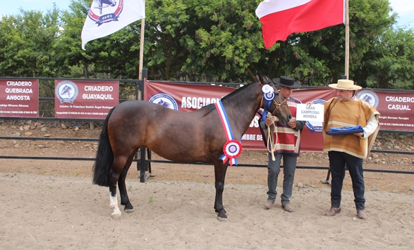 Campeona Yegua Mayor: Ronquido Es Fija. Nº de Inscripción: 242492. Fecha de Nacimiento: 29-10-2012. Padre: Agua de Los Campos y Maquena Carroñero. Madre: Vista Volcán Carta Fija. Criador: Gastón Pozo Merino. Expositor: Alejandro Milla Milla.