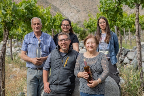 "Paralelamente, la misma zona tiene características climáticas y geográficas que son muy óptimas para la producción de pisco. De hecho, años atrás, un señor que se llamaba Liberato Campuzano fundó la cooperativa Control Pisquero y mi abuela fue parte de esa cooperativa durante muchos años. Por otro lado, el esposo de mi abuela Delmira Viera, Andrés Castillo, se desplazaba precisamente entre la cordillera -un sector que se llama Carrizal- hasta Puerto Oscuro con sus vacas, y lo bonito de la historia es que mi abuelo le ayudaba a su suegro a poder cosechar la uva, porque él tenía cargas de animales y las parras están en ladera de cerro, entonces sacarlas a mano era muy complejo. Ahí se une el mundo de la producción de uva pisquera con el mundo de la trashumancia".