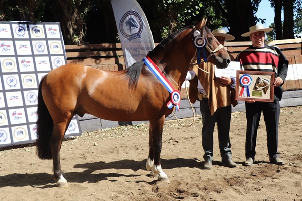 Campeona Yegua: Camenchito Esa Rotita. N° de Inscripción: 318038. Fecha de Nacimiento: 16-03-2022. Padre: Flor del Llaima Remiendo. Madre: Donde Pancho La Incondicional. Criador: Carlos Reyes Sanzana. Expositor: Carlos Moisés Adán Reyes.