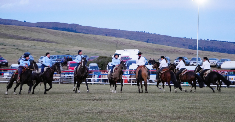 El epicentro de la convocatoria fue la cancha de domas “La Tembladera”, donde la Escuadra Patagónica Gauchas y Huasas brindó emocionantes presentaciones, dejando en claro que ser jinete y amor por el caballo no es cuestión sólo de hombres, sino también de hermosas y elegantes mujeres que cautivaron a todos con sus destrezas, brindando representaciones artísticas para representar los orígenes de la Patagonia.