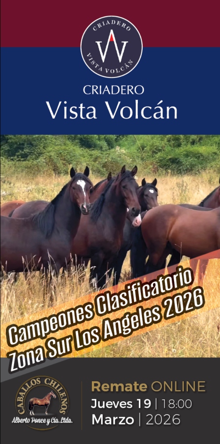 El Criadero Vista Volcán, propiedad de don Ricardo Walker, sale este jueves 19 de marzo a remate a partir de las 18:00 horas en un evento de destacados ejemplares, muchos de ellos corriendo.